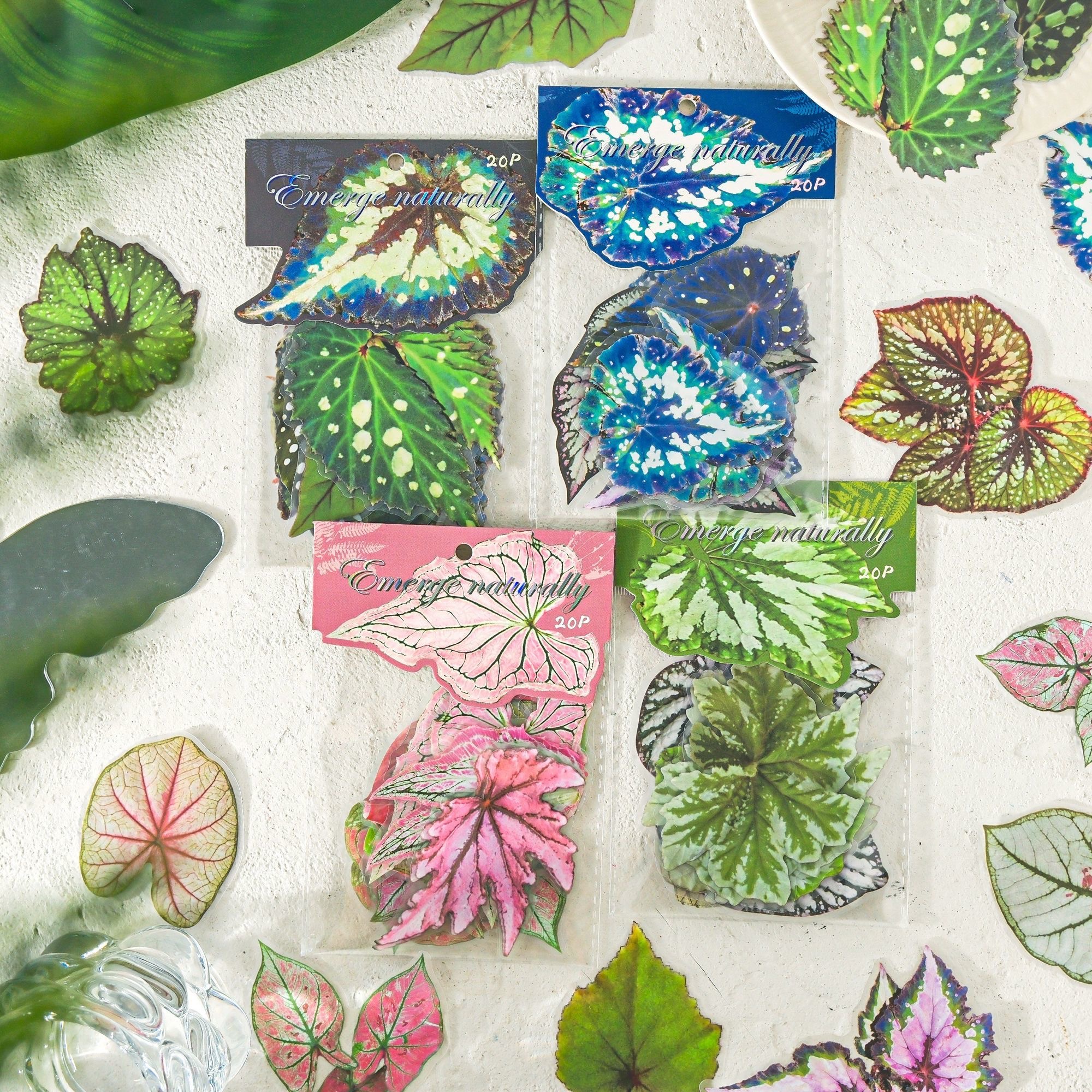 Realistic Botanical PET Stickers | Begonia and Caladium LeavesRealistic Botanical PET Stickers | Begonia and Caladium Leaves